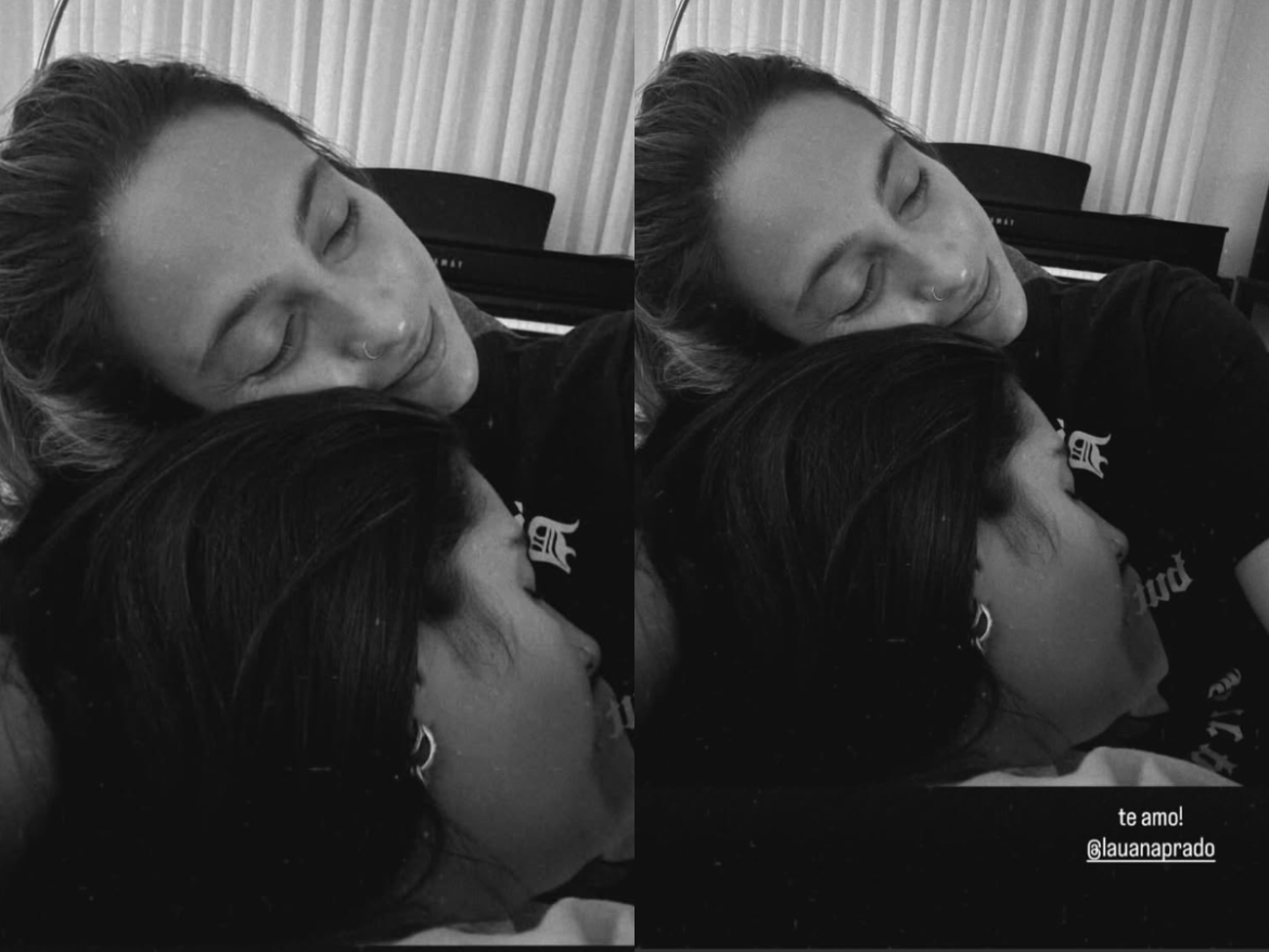 “Dormir no peito é o que me faz ninar. Amo muito você”, escreveu Lauana na legenda do registro em que surge nos braços de Tati.